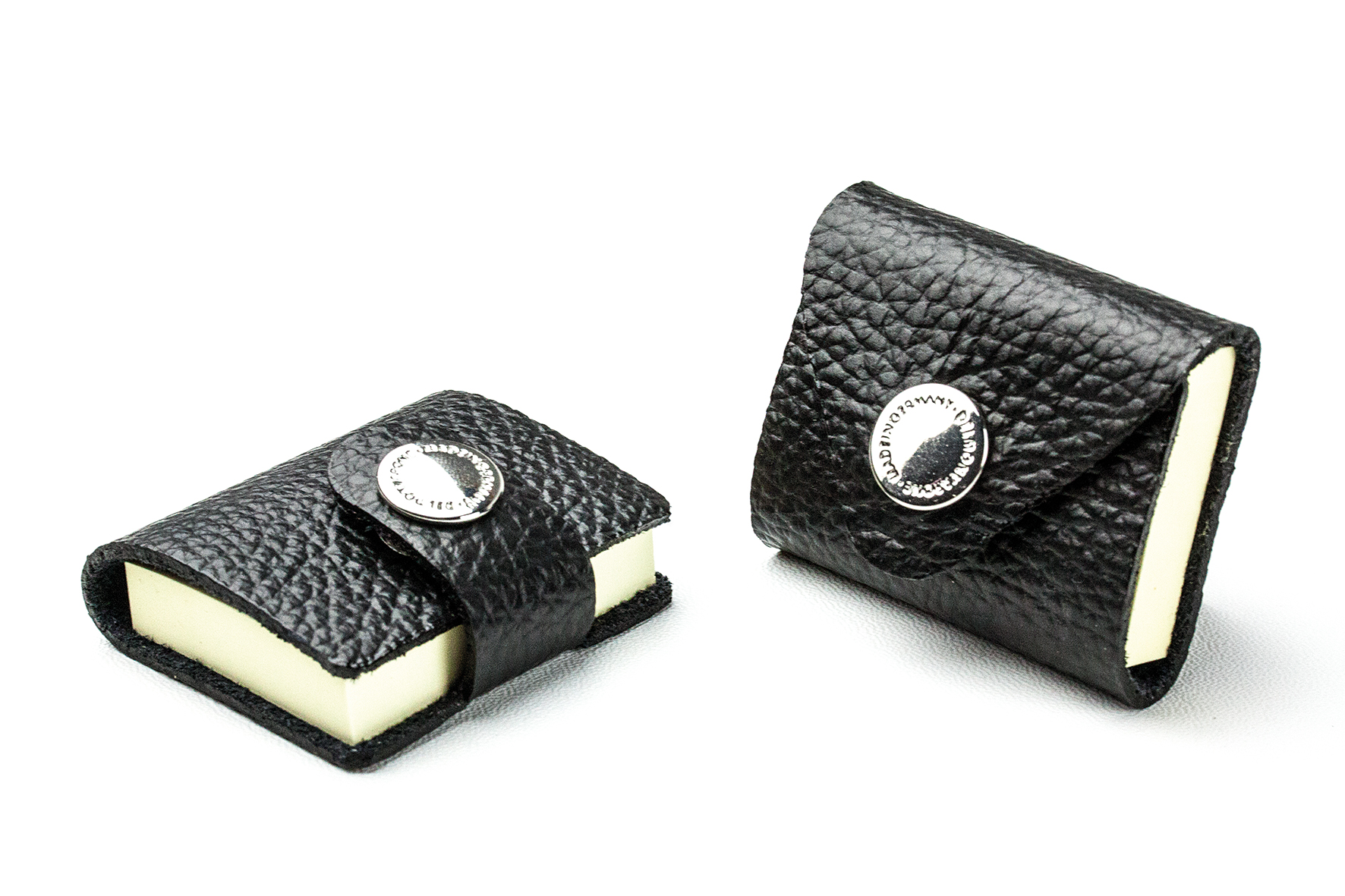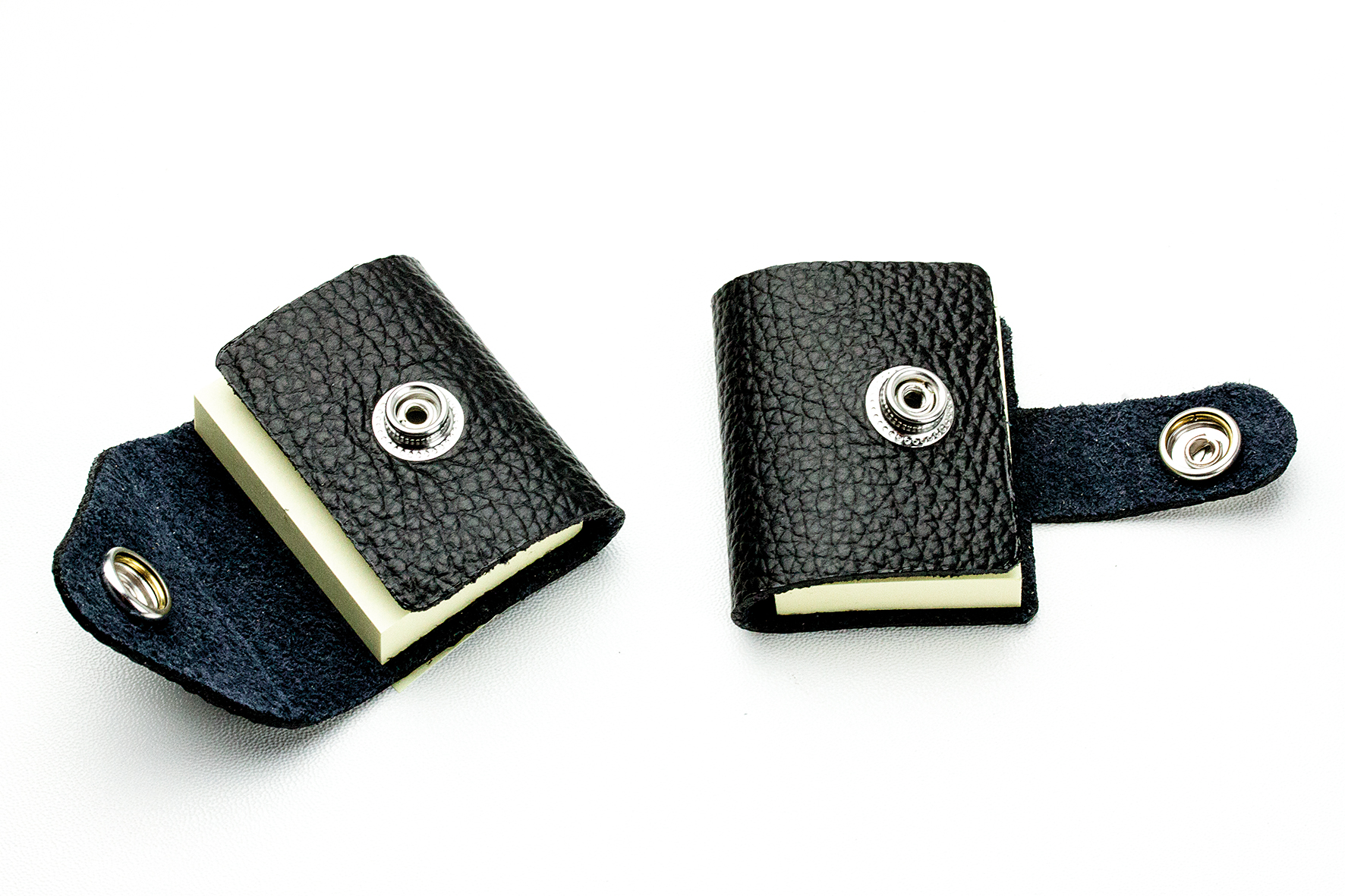 Exclusives Set aus 2 Etuis mit unterschiedlicher Verschlußform für Ihre Haftnotizen. Die Etuis haben einen hochwertigen Druckknopf und sind inclusive eines 100 Blatt Haftnotizblocks im Format von 38 x 51 mm. Dies ist ein gängiges Format und überall erhältlich. Der Block wird einfach mit dem Haftklebestreifen im Etui fixiert.