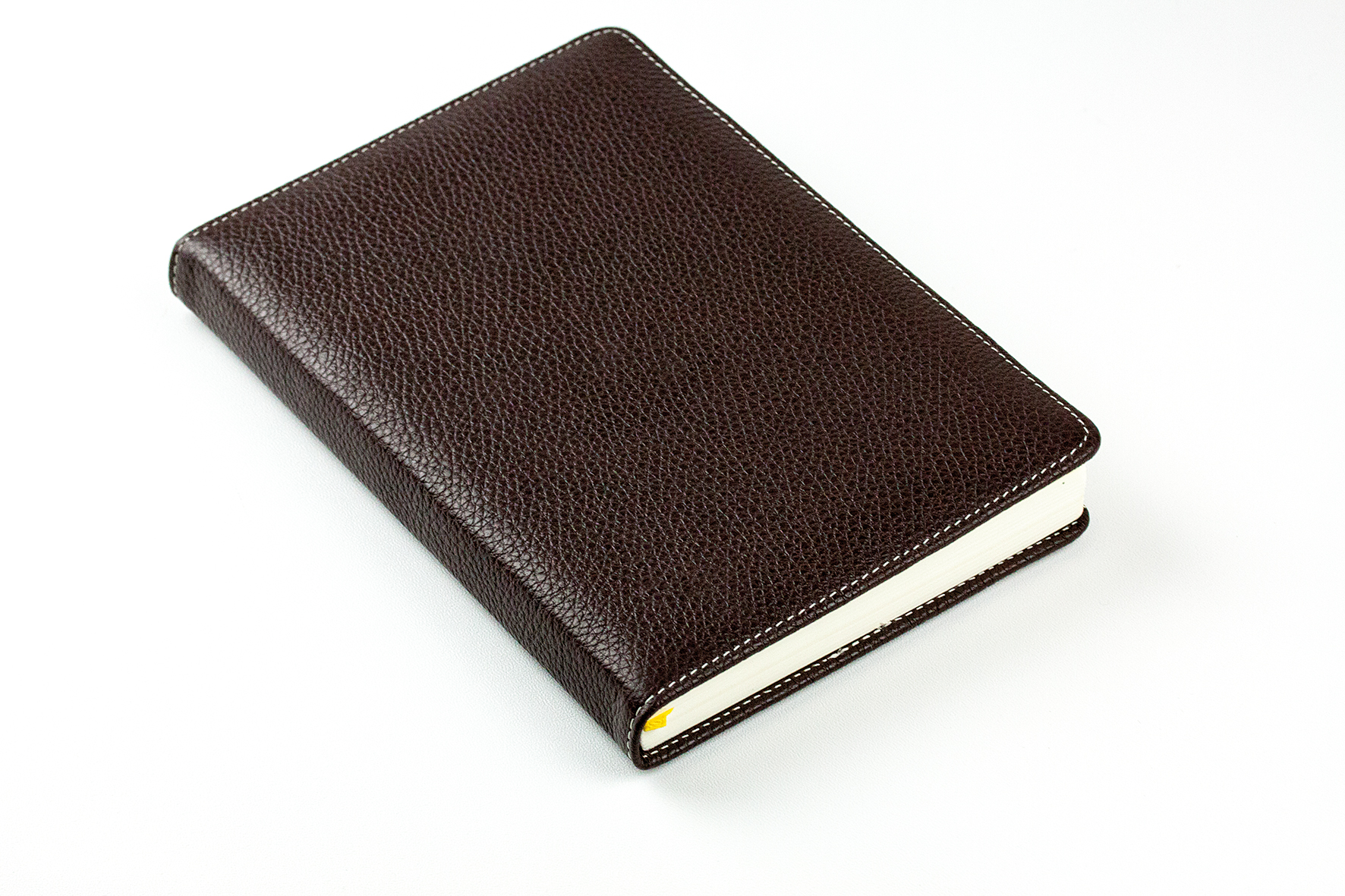 Genarbtes Nappa Vollrindleder mit heller Kontast Steppnaht. Durch die große Narbung des Leders ist der Artikel auf Dauer ein sehr robuster und langlebiger Begleiter.