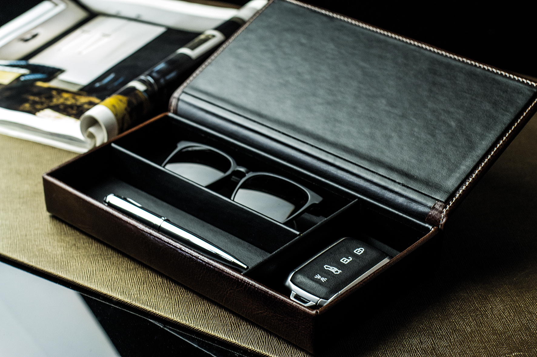 Ablagekasten mit Deckel PREMIUM LEDER VINTAGE marronebraun