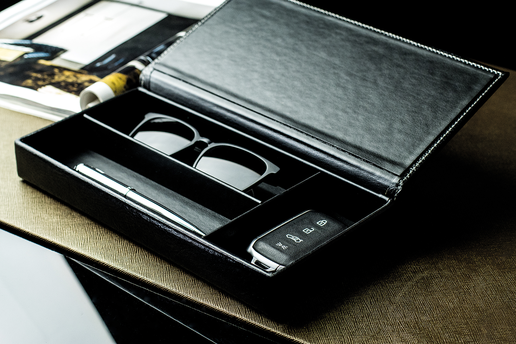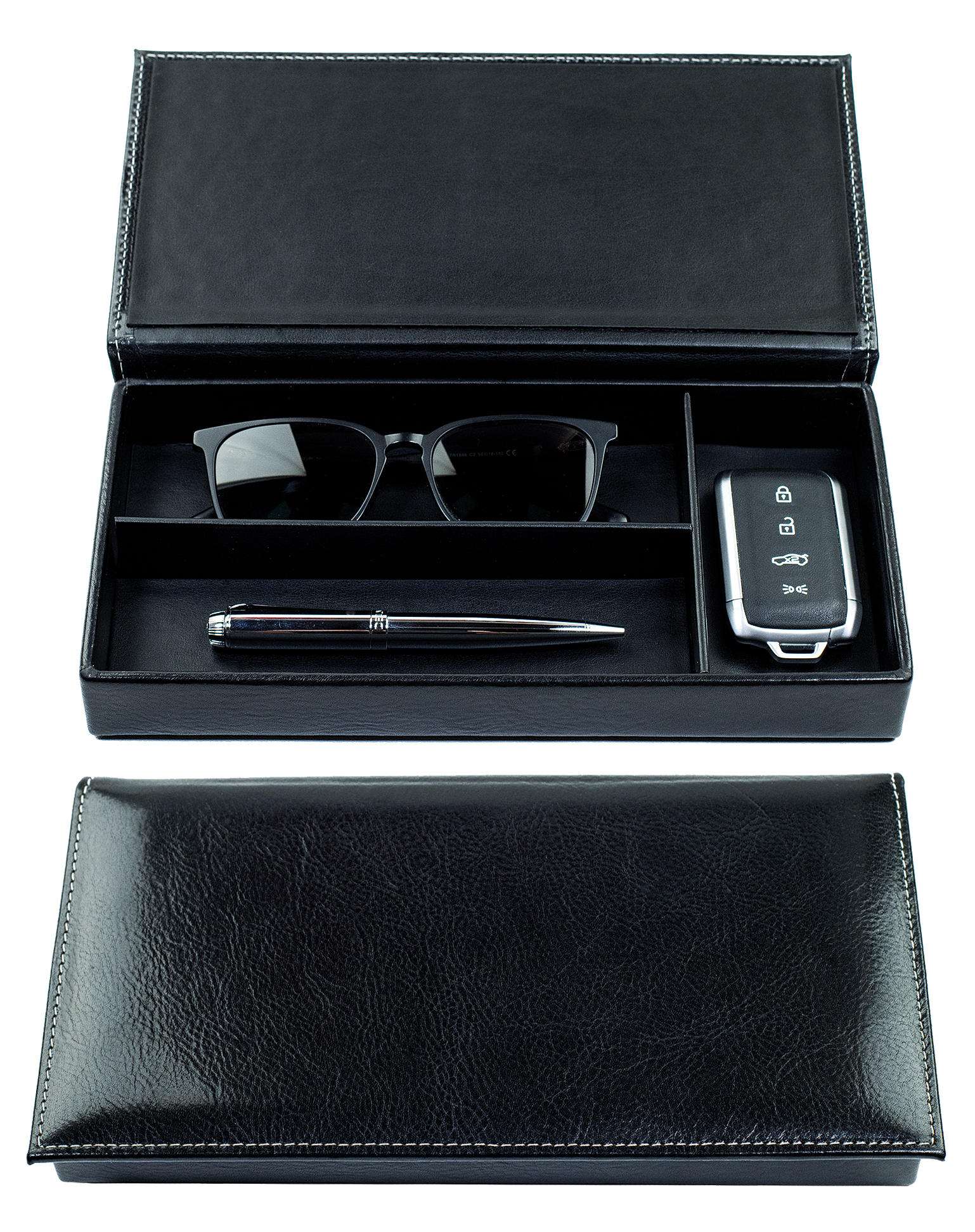 Ablagekasten mit Deckel PREMIUM LEDER VINTAGE schwarz