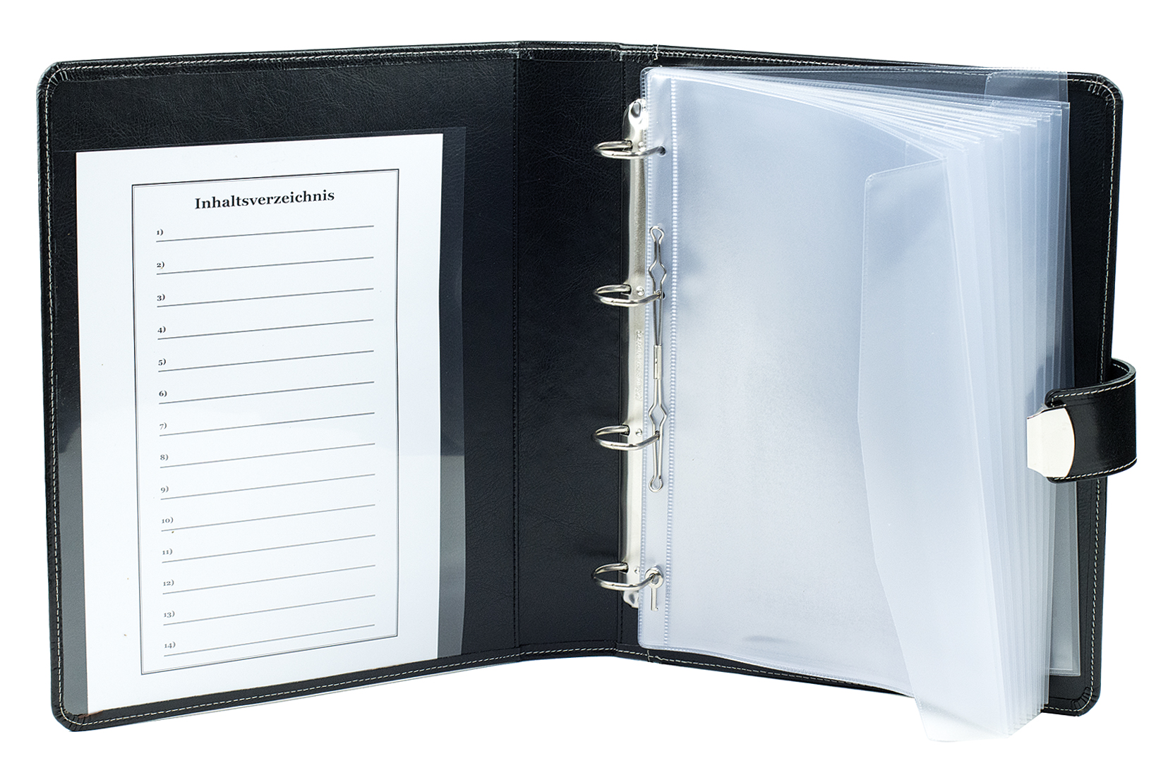 – Klarsichtlasche inkl. Inhaltsverzeichnis auf der linken Seite