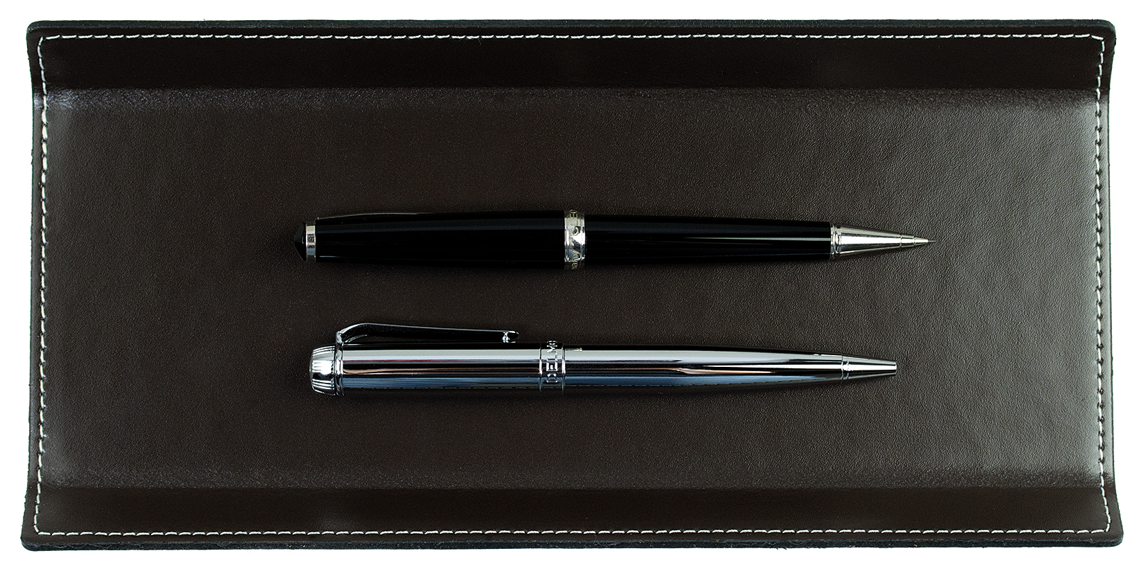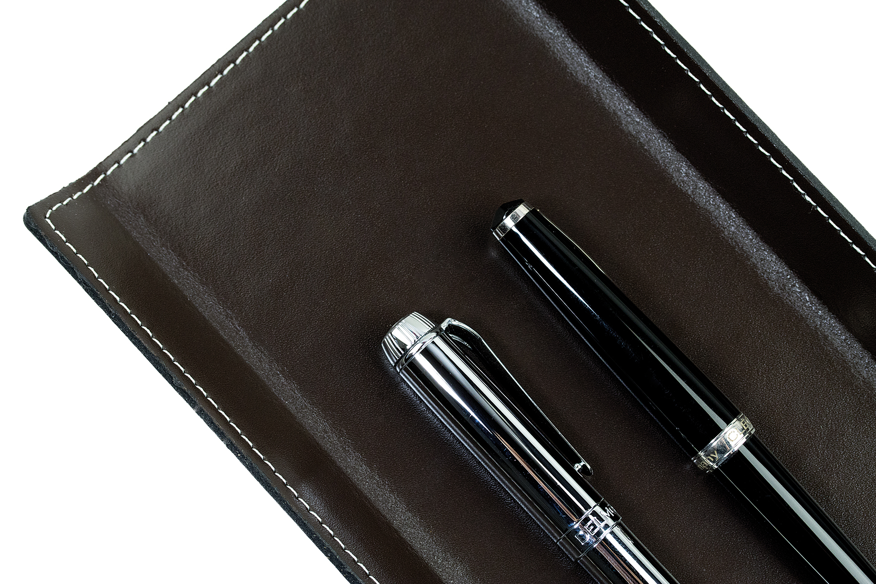 Stilvolle Federschale zur Ablage Ihrer hochwertigen Schreibgeräte, Ober-und Unterseite aus echtem Leder. Innen mit schwerer Metalleinlage. (Lieferung ohne Schreibgeräte)