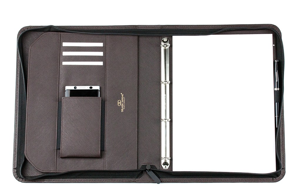 Preview: Manager Orgamappe DIN A4 SMALL SAFFIANO Lederimitat dunkelbraun