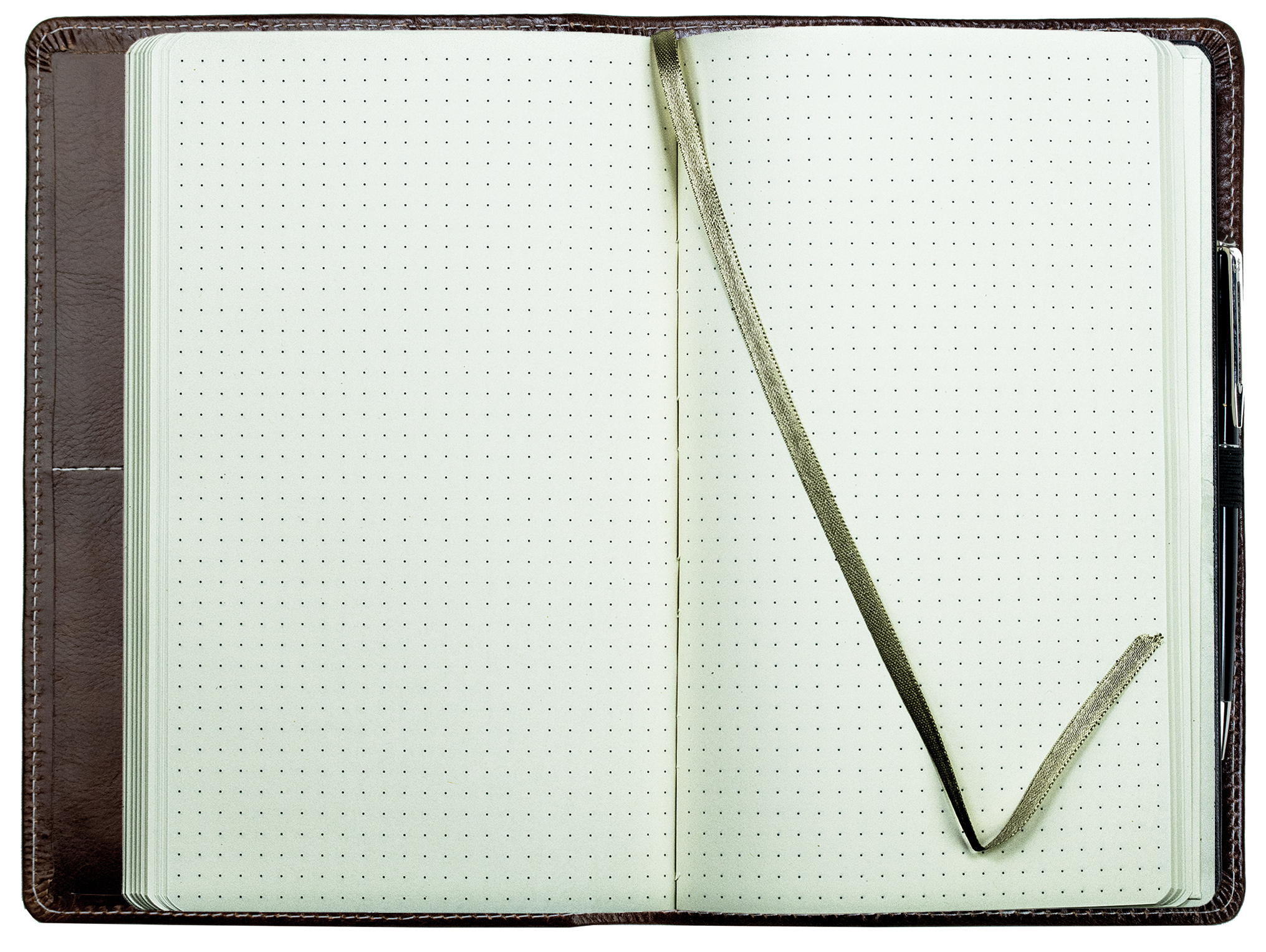 – inkl. Notizbuch DIN A5 schmal mit 240 Seiten cremefarbenem Papier punktiert (70 g/m²), mit Merkband als Orientierungshilfe,