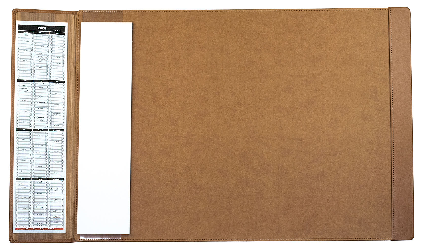 Mobile Preview: Schreibunterlage 65x45 mit Klappleiste inkl. Block + Kalender 25/26 PREMIUM LEDER BOXCALF cuoiobraun (glatt)