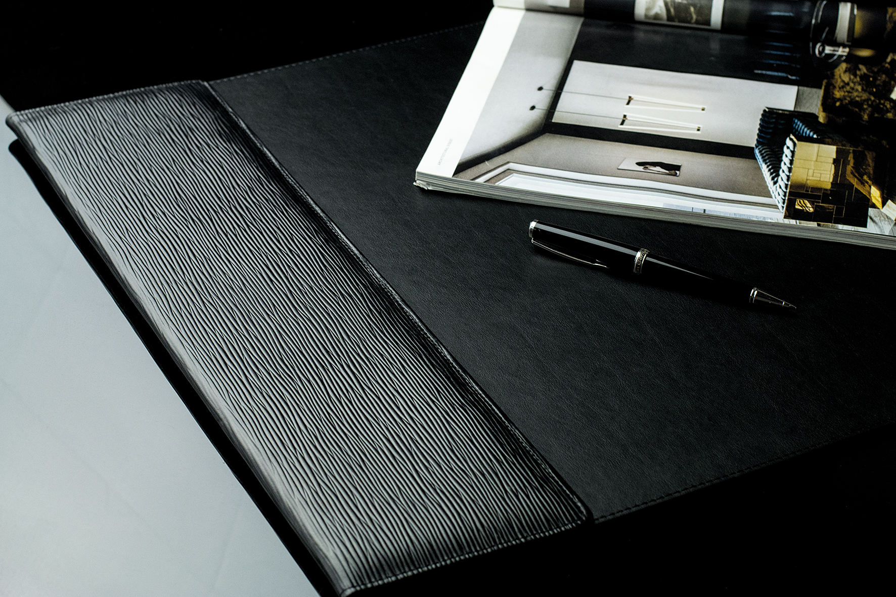 Mobile Preview: Schreibunterlage 65x45 mit Klappleiste inkl. Block + Kalender 25/26 PREMIUM LEDER Manhattan mit Paglia Narbung