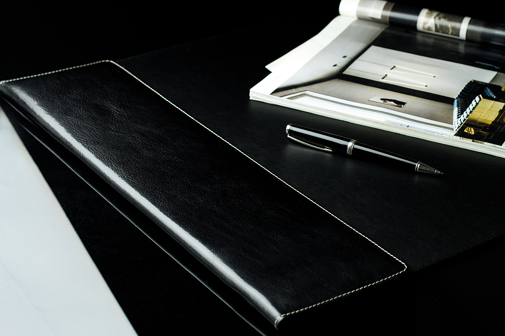 Schreibunterlage 65x45 mit Klappleiste inkl. Block + Kalender 25/26 PREMIUM LEDER VINTAGE Anilin schwarz