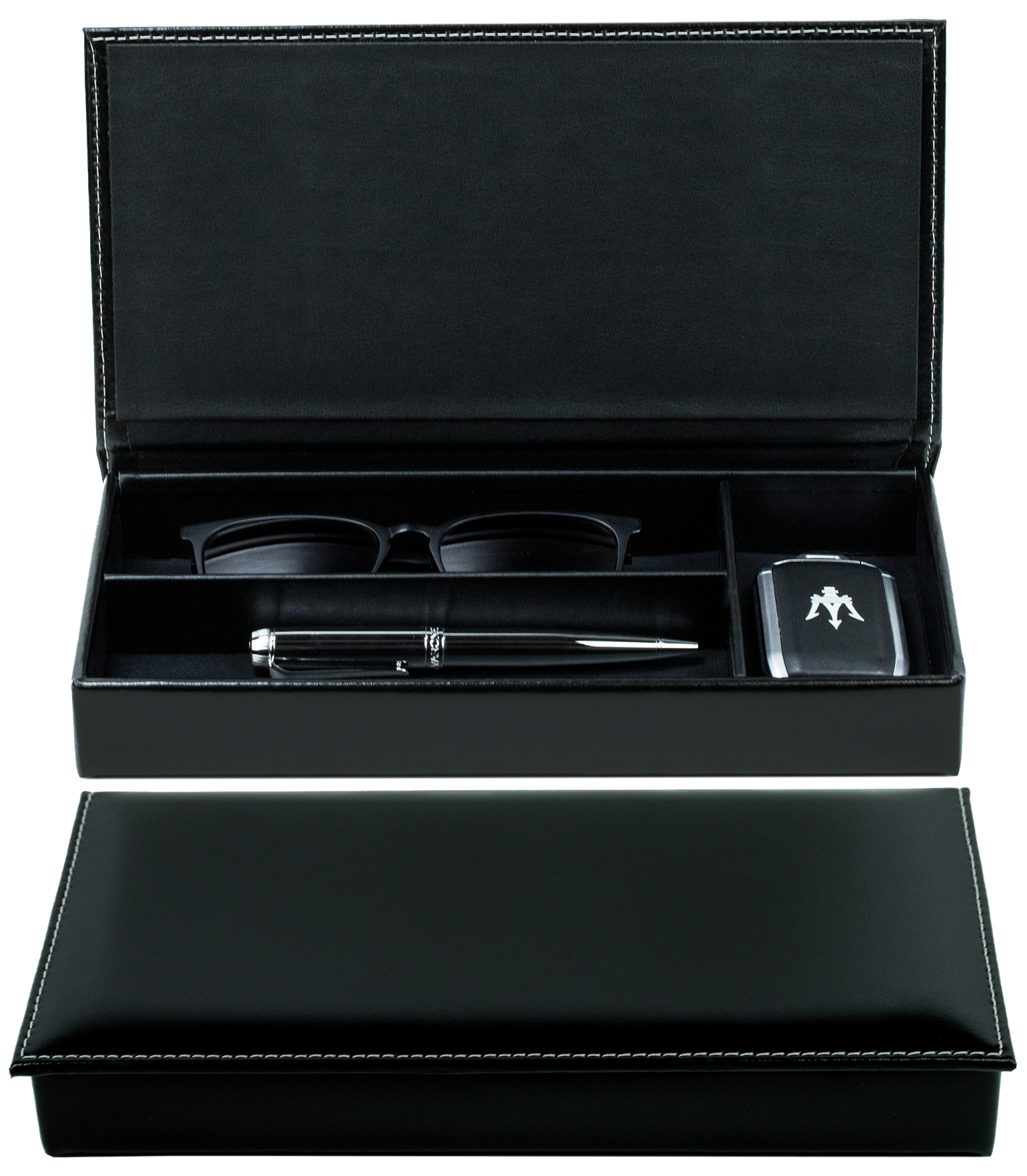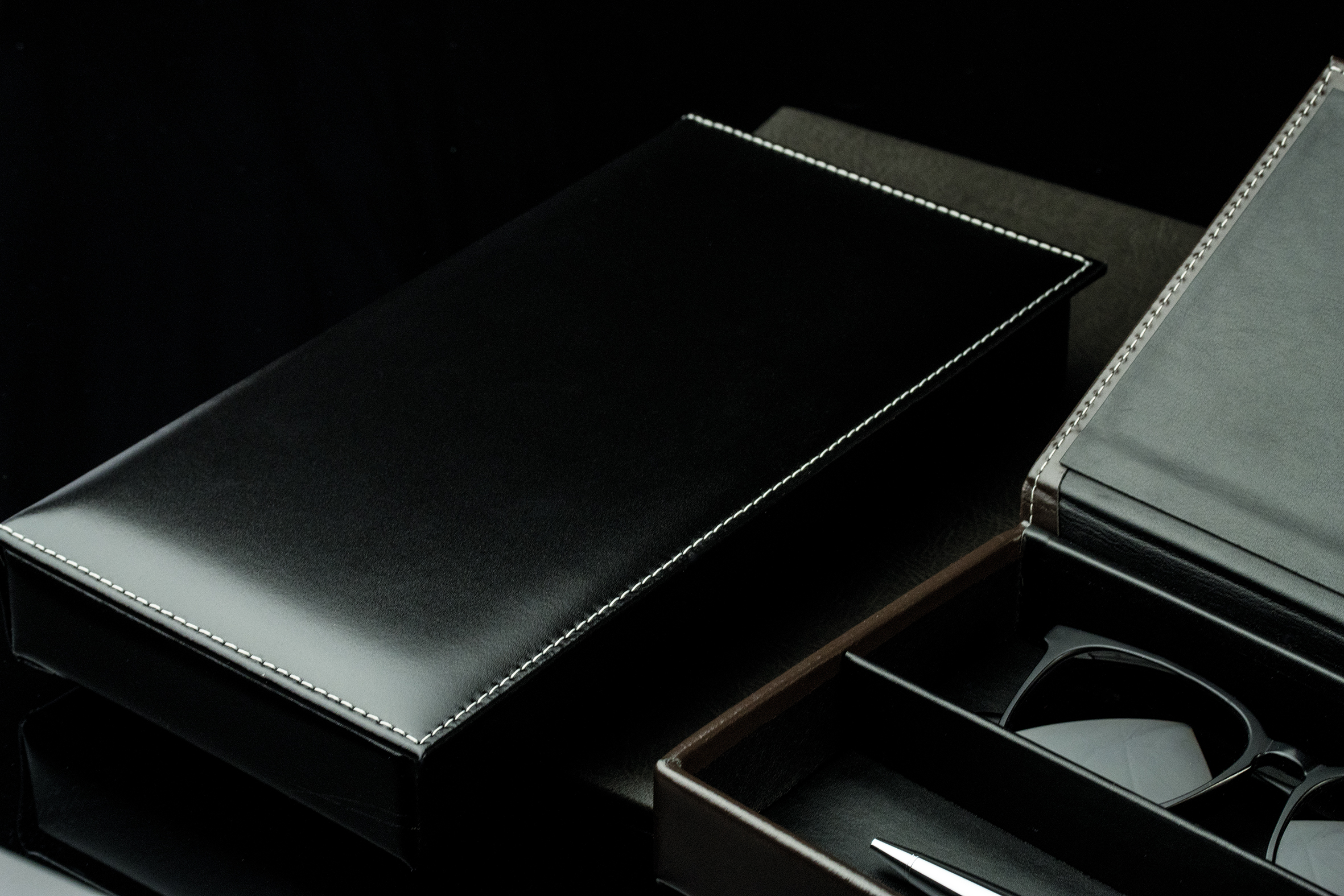 Preview: Ablagekasten mit Deckel CAMBRIDGE Top Grain Rindspaltleder schwarz