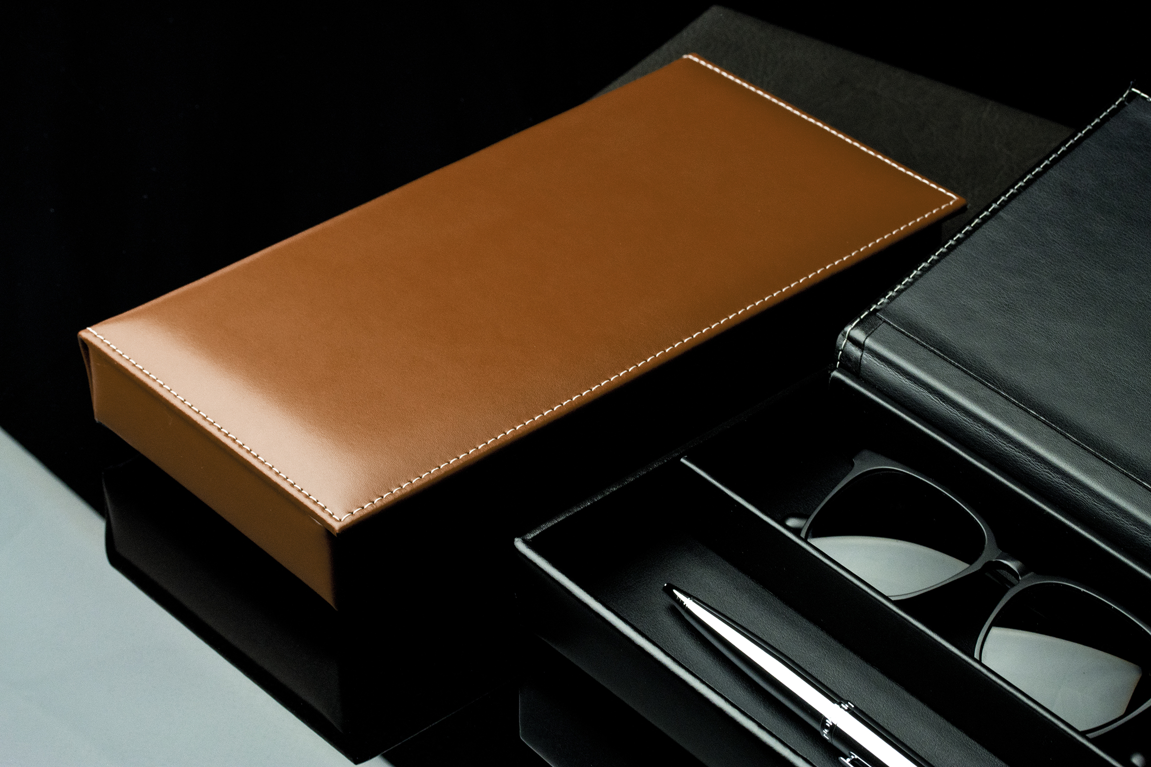 Ablagekasten mit Deckel CAMBRIDGE Top Grain Rindspaltleder hellbraun