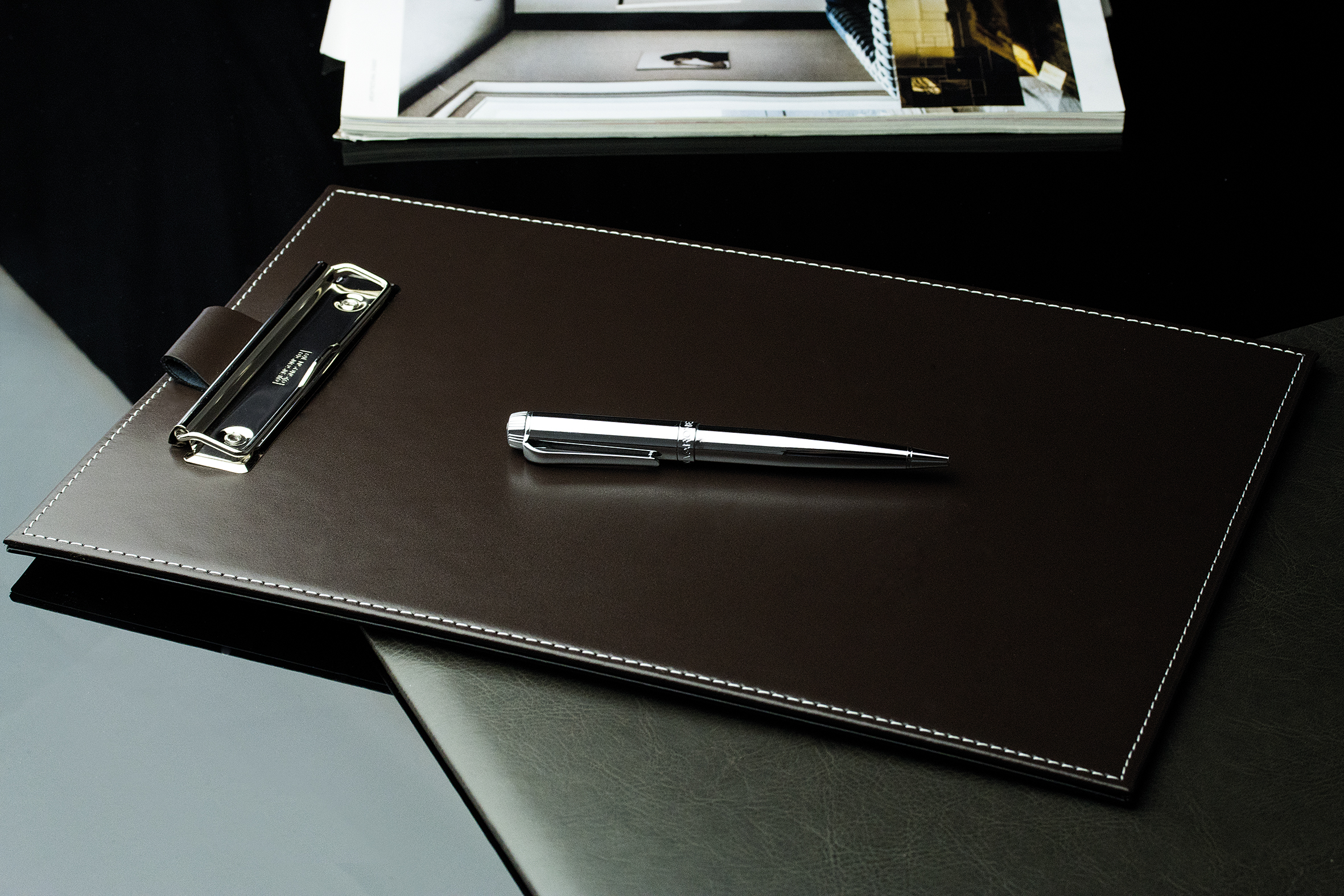 Klemmbrett DIN A4 mit Blockklemme in CAMBRIDGE Top Grain Rindspaltleder dunkelbraun