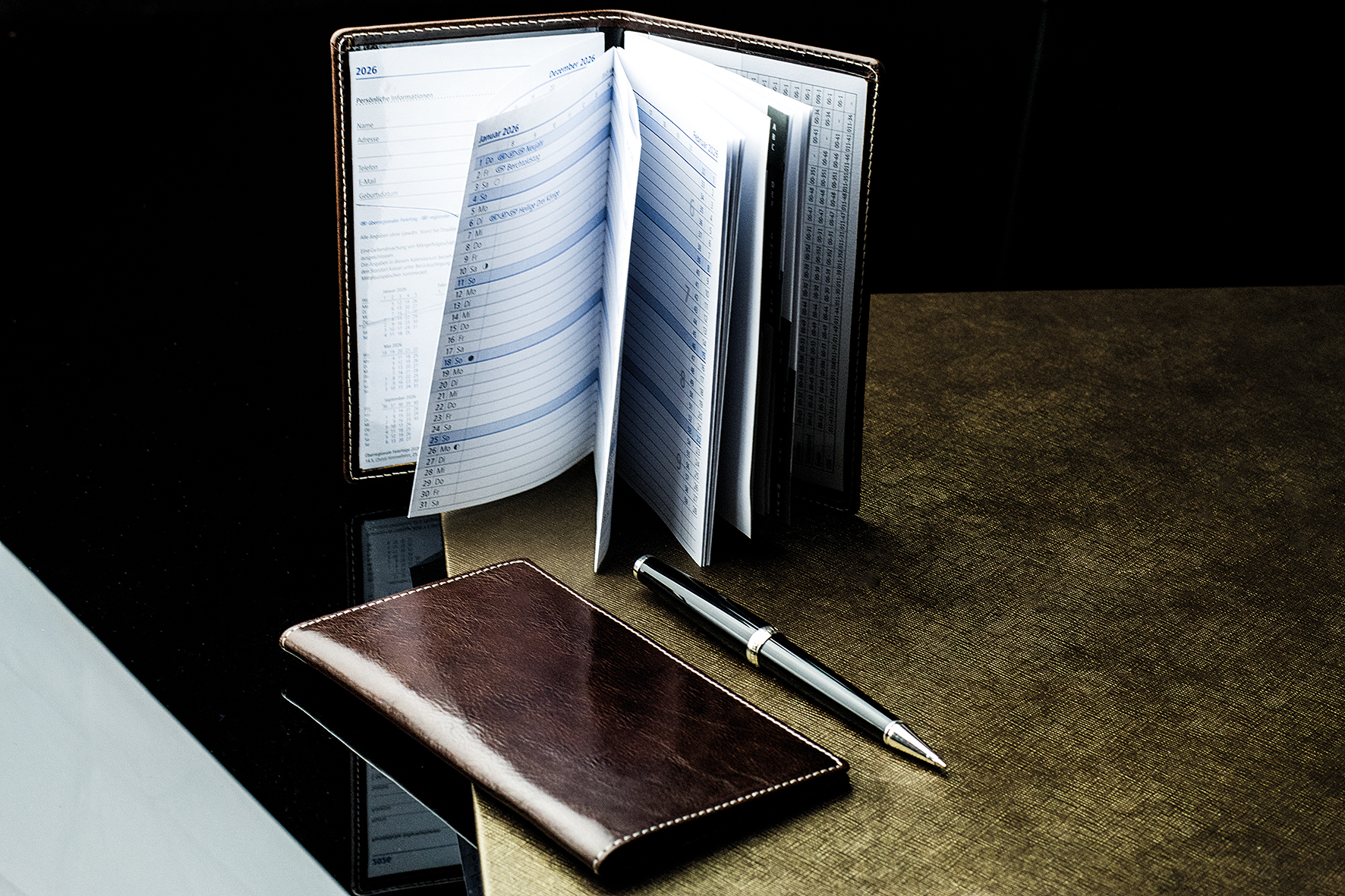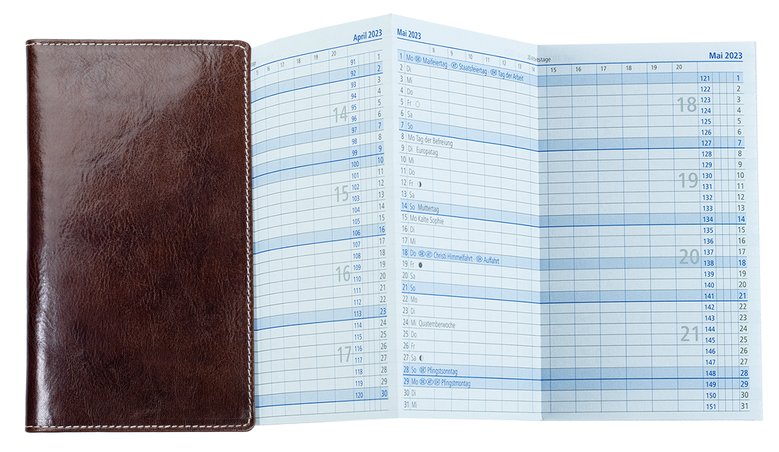 Klassischer Leporello Faltkalender mit einem Monat auf 2 Seiten und separatem Adressenheft. Der Kalender ist 14-fach gefalzt und kann komplett auseinandergefaltet werden. Innen hat der Kalender links und rechts je ein Klarsicht Einsteckfach mit einer Merklasche und 2 Kartenschlitzen. Sie können das Kalendarium jedes Jahr als Ersatzartikel hier im Shop nachbestellen. (Lieferung ohne Schreibgeräte)
