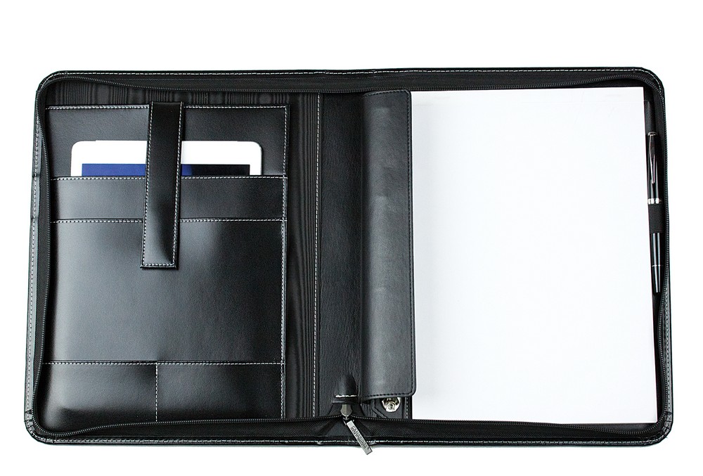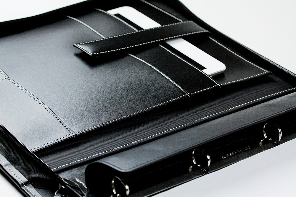 Manager-Ringbuch DIN A4 mit Tablet Computer Fach in CAMBRIDGE Top Grain Rindleder schwarz