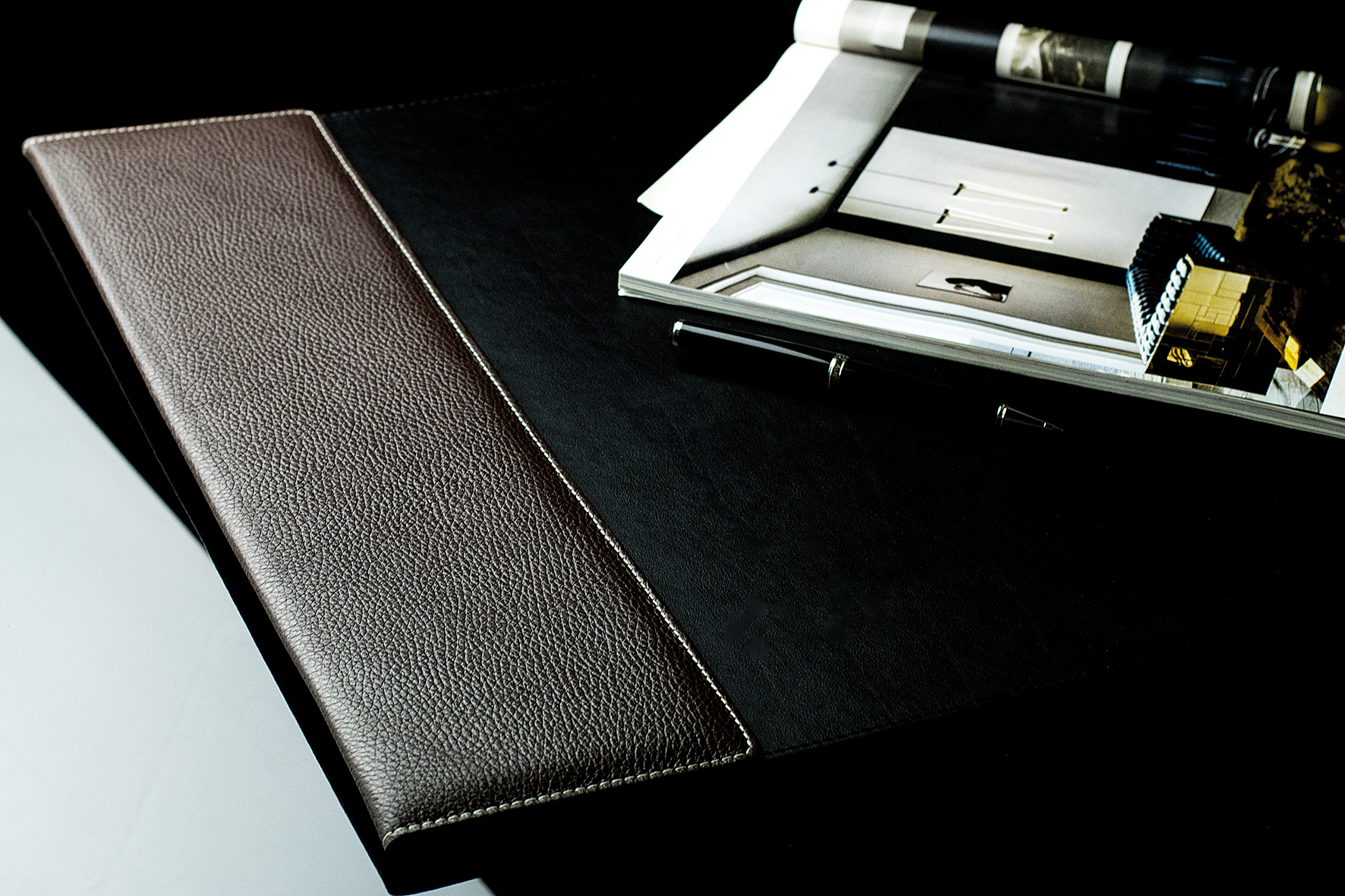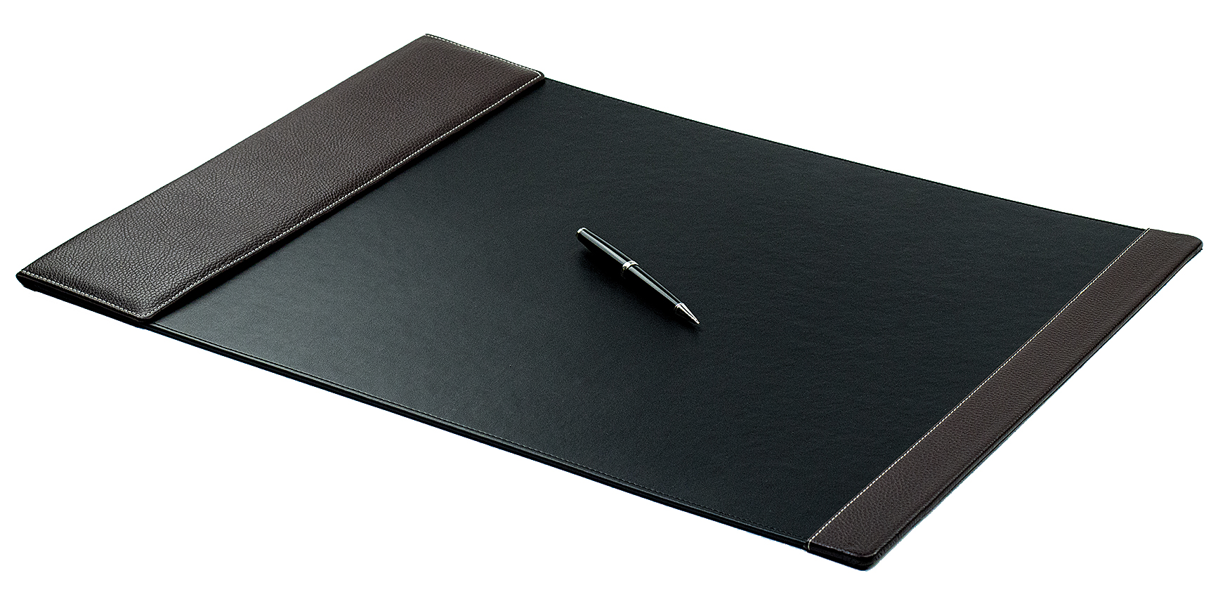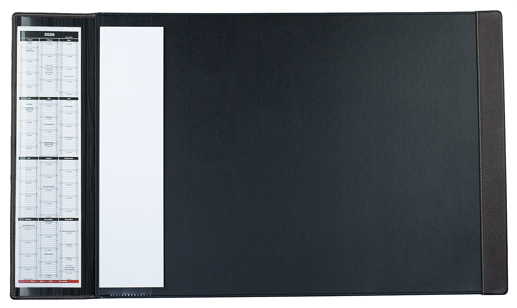 Schreibunterlage 65x45 mit Klappleiste inkl. Block + Kalender 25/26 PREMIUM LEDER SOFT GRAIN dunkelbraun (genarbt)