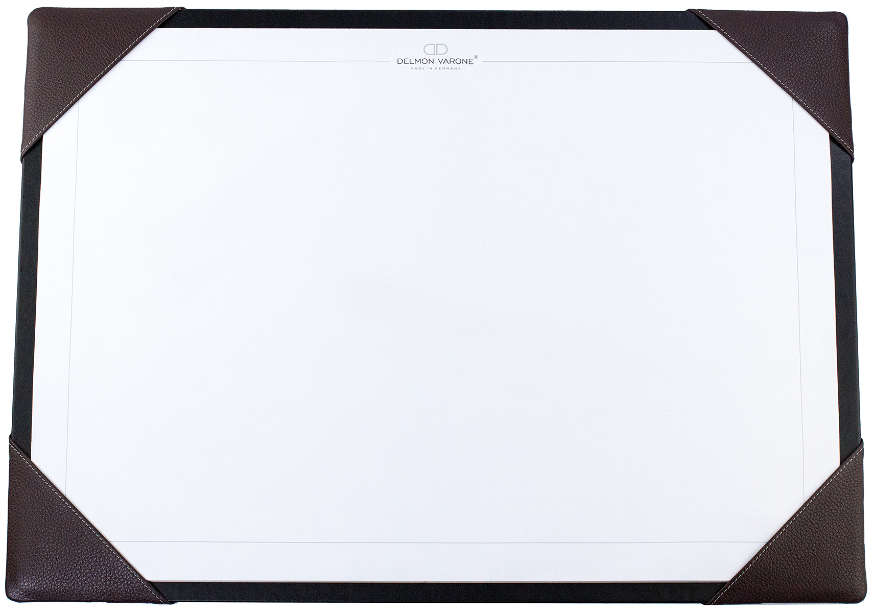 Schreibunterlage mit 4 Ecken + Papierblock PREMIUM LEDER SOFTGRAIN dunkelbraun (genarbt)