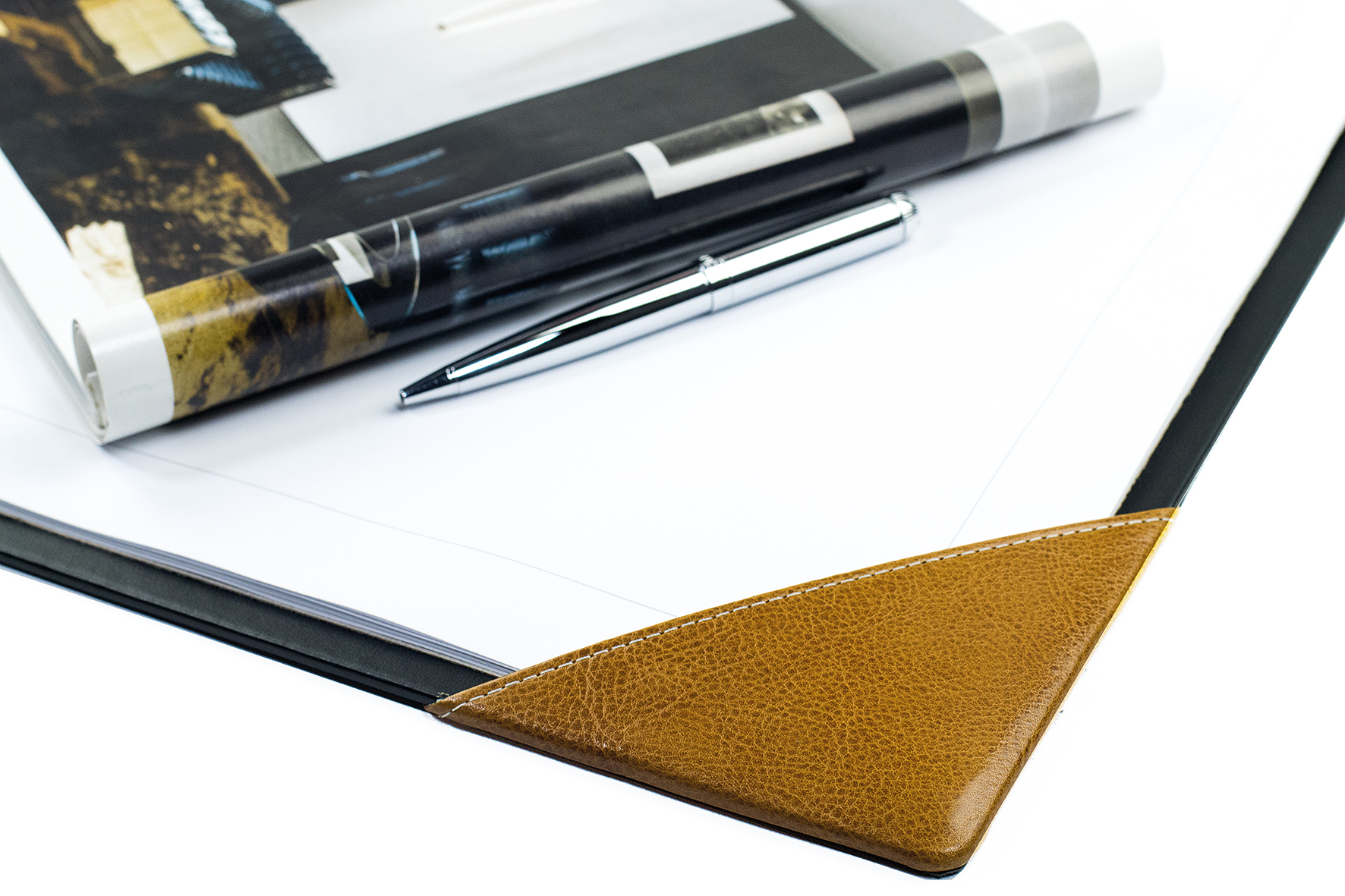Preview: Schreibunterlage mit 4 Ecken + Papierblock PREMIUM LEDER VINTAGE cuoiobraun